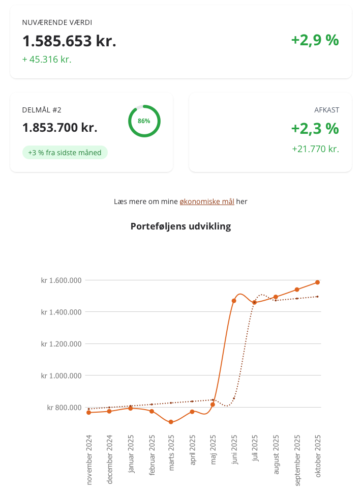 Jeg investerer i flere forskellige typer af aktivklasser, men en stor del af min portefølje består af aktier. Min portefølje består i øjeblikket af cirka 50 procent i aktier, hvoraf størstedelen falder under kategorien udbytteaktier. Her er mit fokus på store, solide selskaber, der har en god udbyttehistorik.