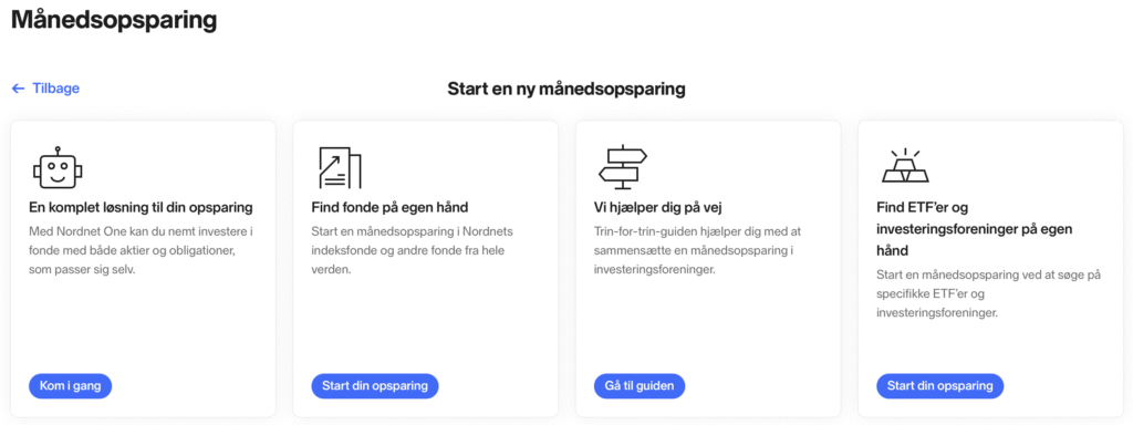 Når du har oprettet dig på Nordnet, har du mulighed for at sætte din månedsopsparing op efter dine ønsker. Afhængig af hvor meget du ved om investeringsforeninger, kan Nordnets værktøj hjælpe dig mere eller mindre. De har både en funktion, hvor de guider dig ud fra dine valg, samt en funktion, hvor du selv har mulighed for at vælge.