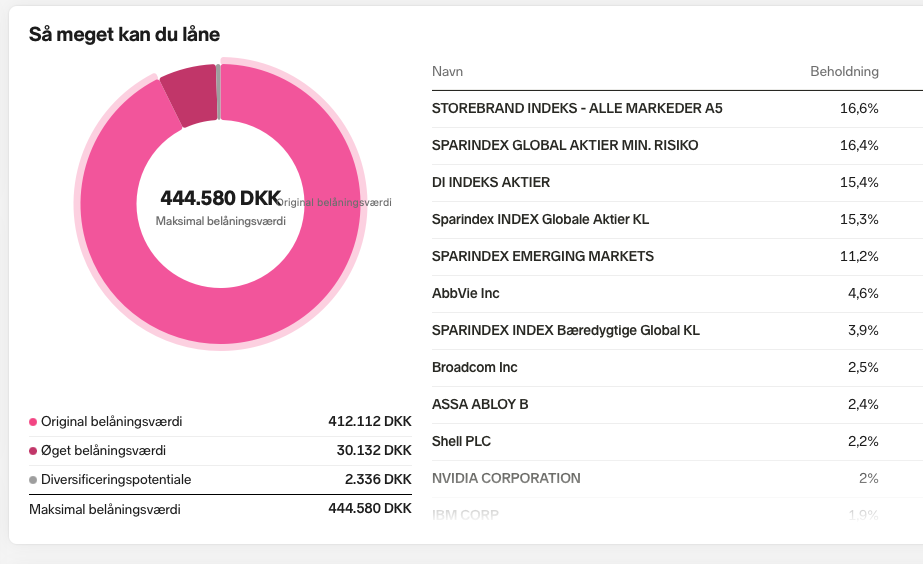 I første omgang har jeg som mål at maksimere mine kreditmuligheder hos Nordnet til en grænse på 200.000 kr. Grænsen kan hæves, men det er mit udgangspunkt lige nu. I skrivende stund vil det kræve en merinvestering på omkring 30.000 kr., hvilket jeg kan være i mål med i næste måned.